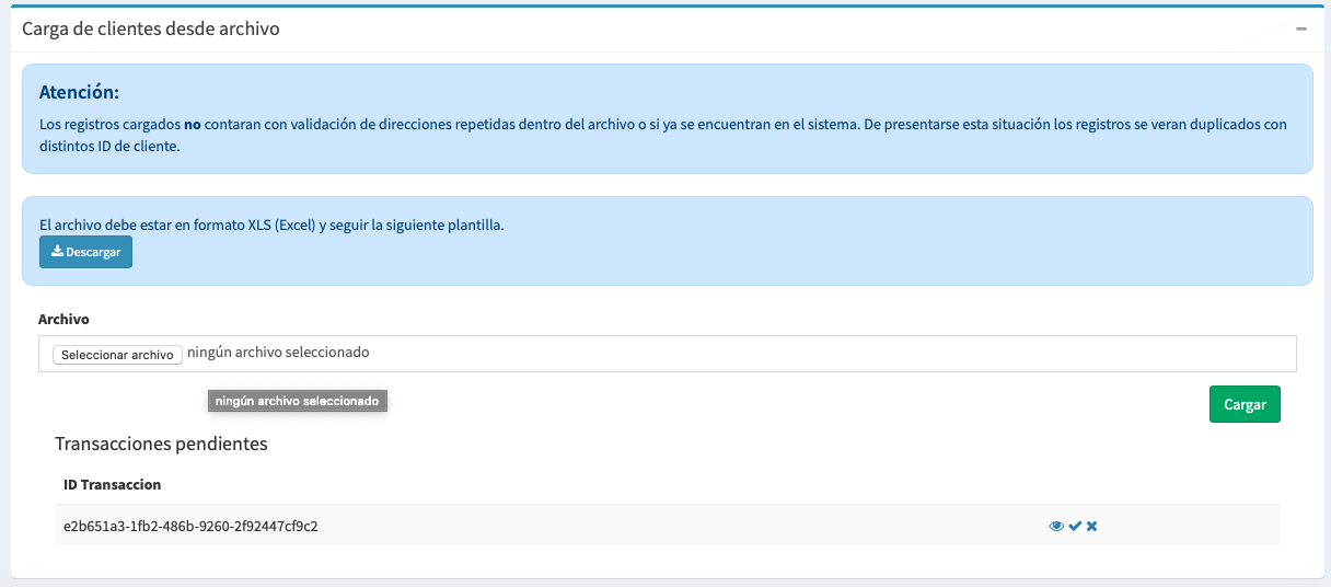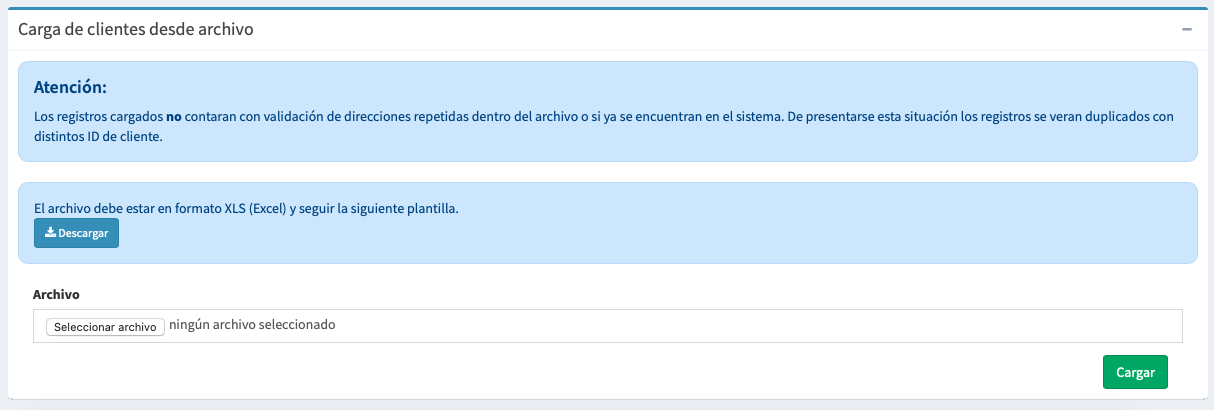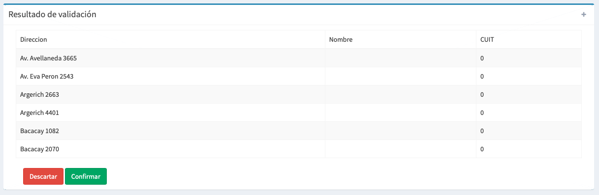 Luego de procesado el archivo, usted vera una lista de todas las direcciones en el archivo a modo de verificación. Una vez confirmados estos cambios podrá ver los nuevos clientes en el listado.