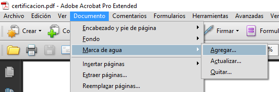 En la barra de opciones superior seleccione Documento -> Marca de agua -> agregar