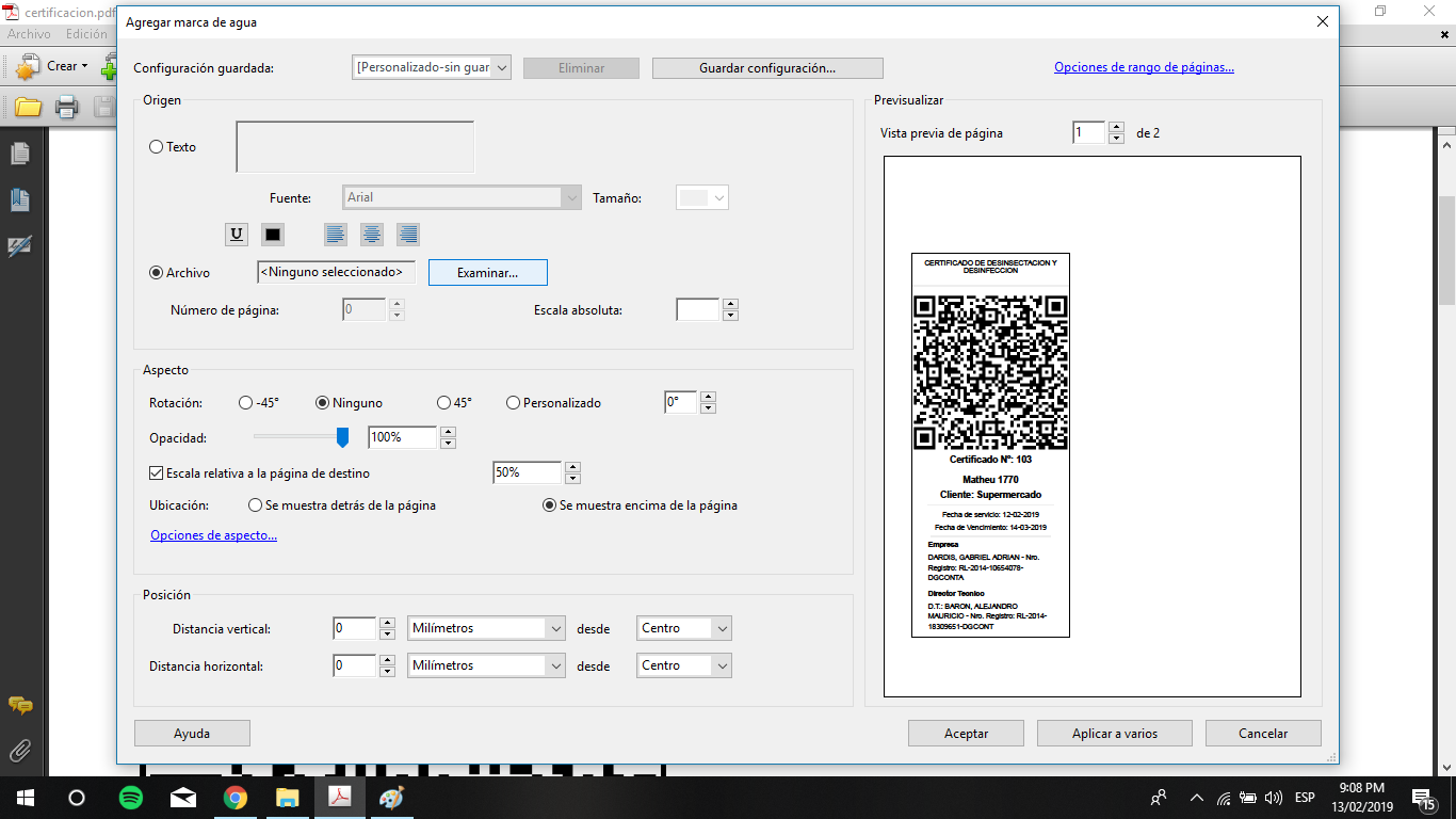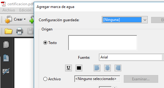 En la sección Origen seleccione la opción archivo y pulse examinar. En este punto deberá seleccionar el archivo del membrete ya en formato PDF