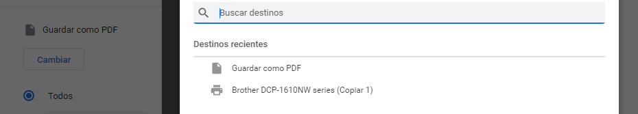 En el cuadro de dialogo de impresión identifique la sección de selección de impresora y oprima cambiar