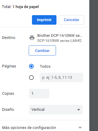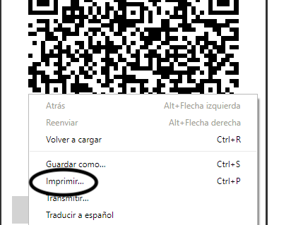 Una vez abierta seleccione Imprimir del menú contextual (Clic derecho) o bien utilice la combinación de teclas CTRL + P